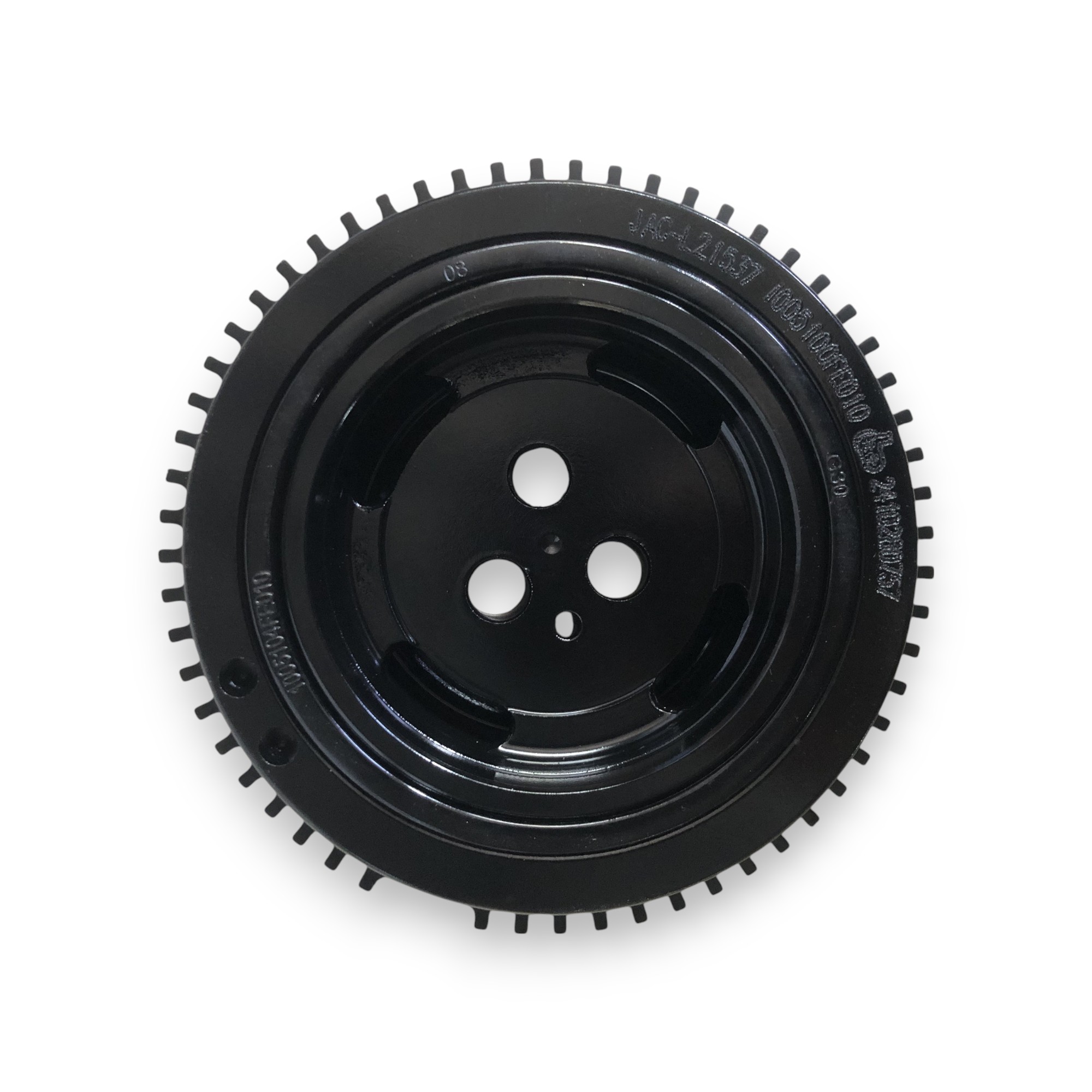 Шкив коленвала JAC N56 демпферный для уровновешивания крутильных колебаний, а также для считывания информации о вращении через датчик коленвала.