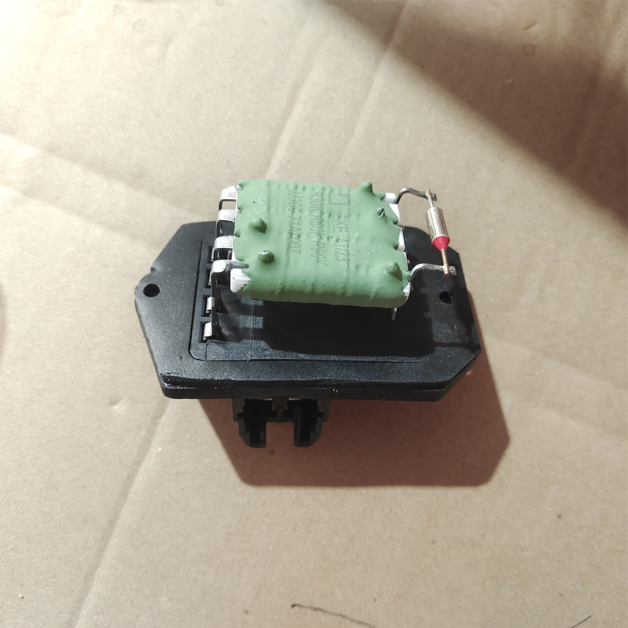 Резистор отопителя салона JAC T8 используется для регулировки работы электродвигателя, вращающего винт в вентиляторе. Используются для контроля скорости вращения вентилятора в автомобильном нагнетателе. Скорость вращения вентилятора можно изменять, регулируя сопротивление резистора при помощи механического рычажка, либо электронным способом – через систему кондиционирования воздуха. Изменение сопротивления влияет на силу тока в электрической цепи двигателя, что, в свою очередь, регулирует скорость вращения вентилятора в нагнетателе.