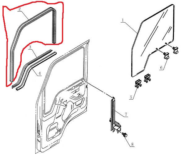 Уплотнитель стекла двери внутренний JAC 1020, 1045